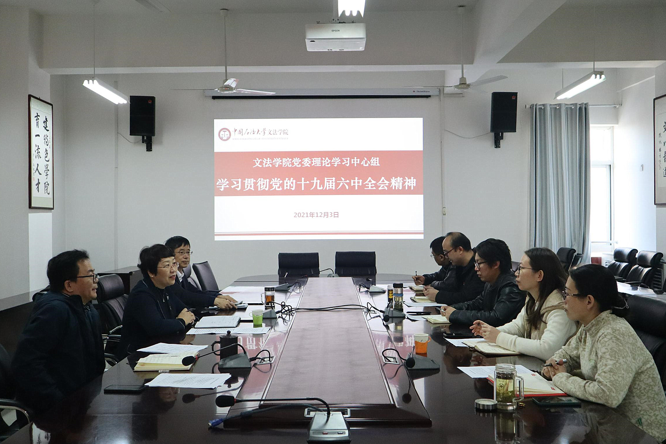 12月3日,600全讯白菜官方网站党委理论学习中心组专题学习贯彻党的十九届六中全会精神,学校党委常委、副校长张玲玲参加此次专题学习。