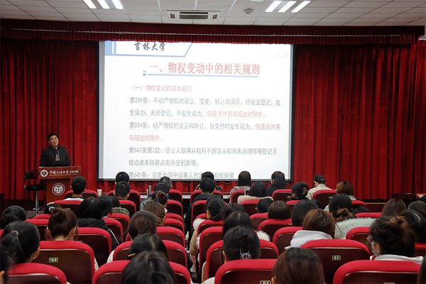 12月1日,黄岛文法讲坛第33讲在模拟法庭142顺利开讲,“长江学者”特聘教授、吉林大学教授、博士生导师、国家级教学名师房绍坤教授应邀作题为“民法典物权编重要法律制度解读”的学术讲座。讲座由600全讯白菜官方网站院长王学栋教授主持,法学系无课教师、研究生及本科生百余人参加了讲座。
