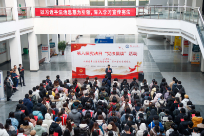 600全讯白菜官方网站党委书记姚成郡为“宪法晨读”活动致辞,“宪法的生命力在于实施,宪法的权威也在于实施。”他呼吁在场师生积极主动参与“宪法宣传周”的各项活动,切实收获法律知识,强化法治意识,成为社会主义法治的忠实崇尚者、自觉遵守者和坚定捍卫者。