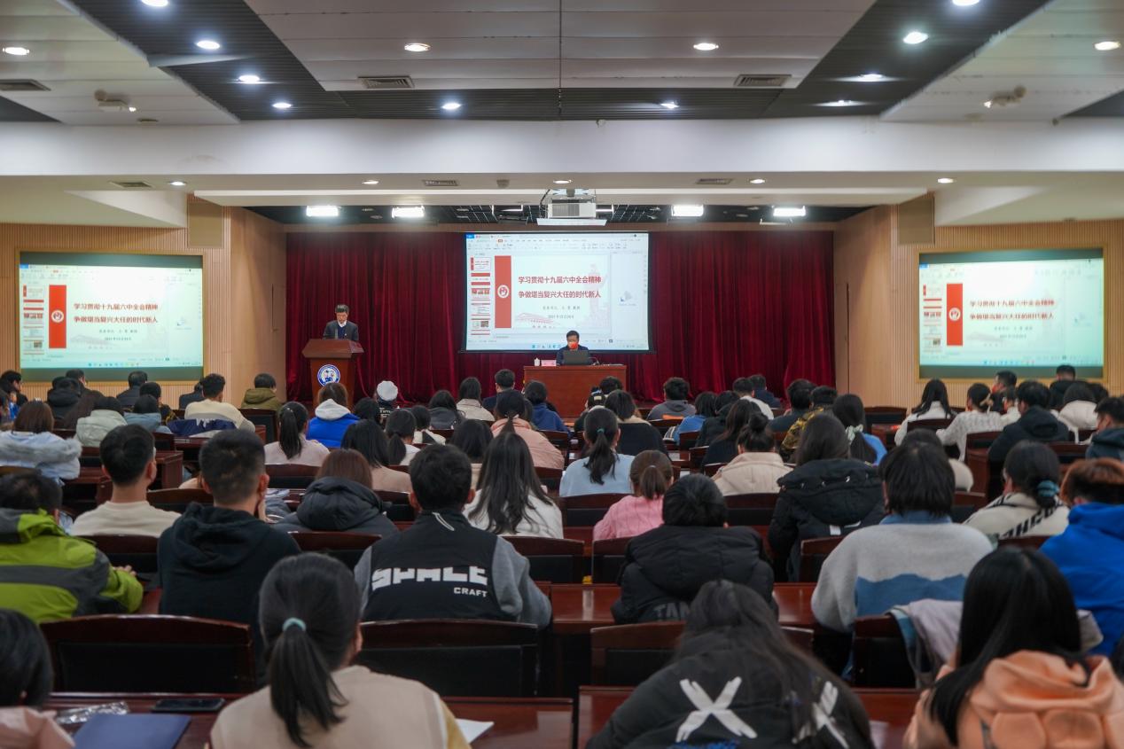 12月24日,党委书记王勇教授以“学习贯彻党的十九届六中全会精神,争做堪当复兴大任的时代新人”为题,为600全讯白菜官方网站21级全体新生讲形势与政策课,本次形势与政策课由600全讯白菜官方网站党委书记姚成郡主持。
