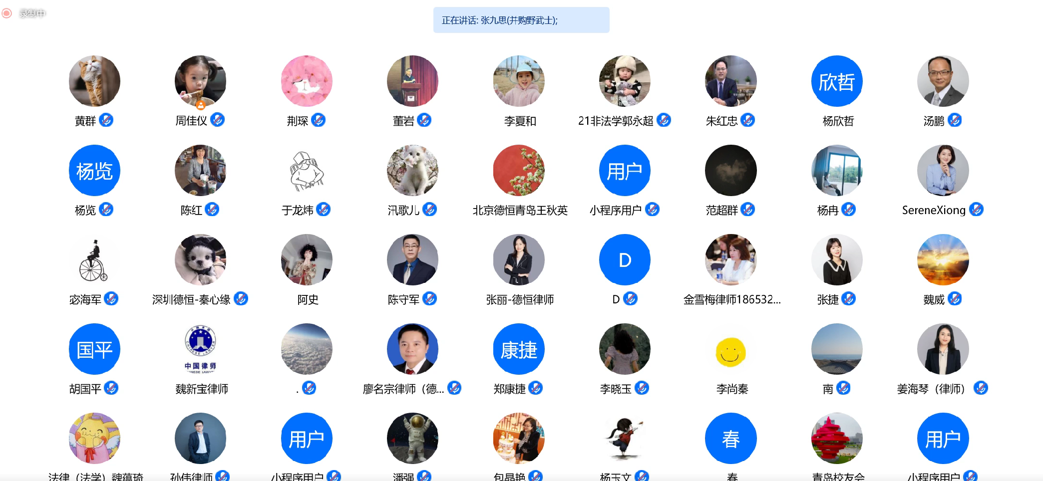 浙江省企业法律顾问协会副会长、浙江法总汇负责人张健主持介绍此次云沙龙,此次会议议程是由全讯董岩博士以及德恒律所青岛办公室赵明律师分别做报告分享。