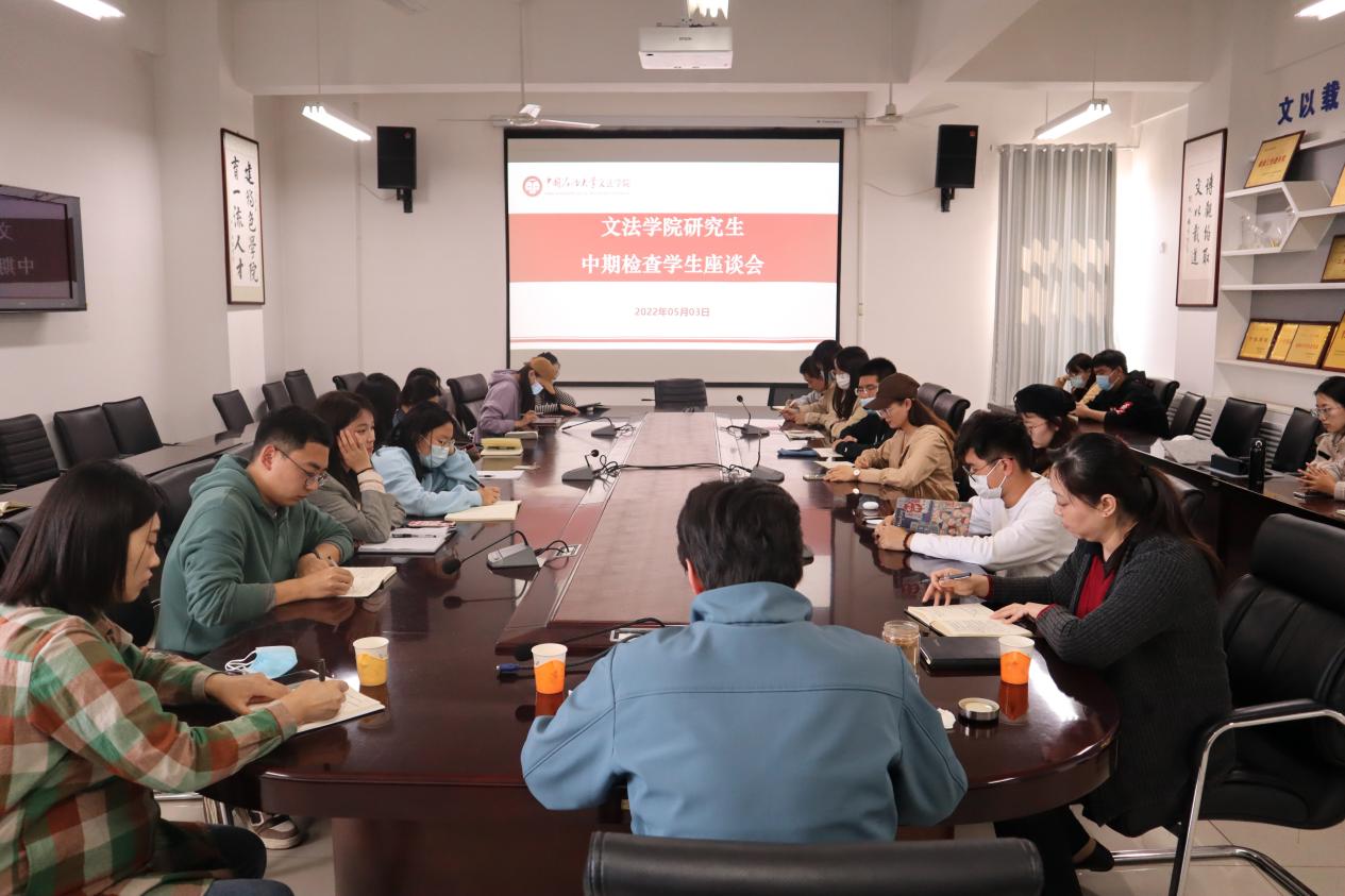 5月3日,全讯在文理楼358召开研究生中期检查学生座谈会。会议由学院副院长魏学宝主持,研究生教学秘书郭静、辅导员于露、法学2001班在校生以及研一、研二全部班级部分学生代表参加。