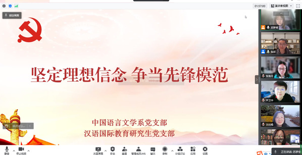 为加强思想学习,强化政治引领,增进教工党支部和学生党支部的交流,4月2日,600全讯白菜官方网站中国语言文学系党支部联合汉语国际教育研究生党支部举行“坚定理想信念,争当先锋模范”主题党日。会议通过线上方式进行,由中国语言文学系党支部书记张欣同志主持,两支部全体党员出席,部分团员、党外人士列席会议。