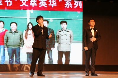 晚会的互动环节格外有趣,主持人邀请到老师与同学共同玩“你比划我猜PK”的游戏,大家积极踊跃参加游戏,场内欢呼喝彩声不断,游戏结束,主持人为获奖的队伍颁送上了小礼品。
