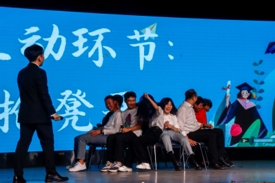 在抢凳子的互动环节中,师生踊跃参加,现场气氛热烈,游戏结束后,许多同学意犹未尽。