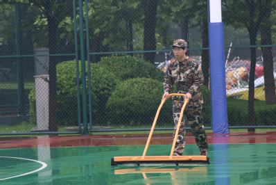 雨天,后勤同学清理场地 高雅琪摄