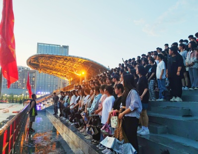 6月28日阴雨连绵不断,但文法五团学生军训的热情并未因潮湿阴沉的天气而减淡半分。