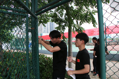 上午九点,文法五团十连进行了定向越野活动,学生男女分开,四人为一组进行活动。活动开始后,每组间隔30秒出发。每组成员分工明确,通力合作,有为队员探路的“急先锋”,也有“智囊团”规划最优路线,所有学生都全力以赴,奔向终点。文法骄子不惧炎炎烈日,最终都在90分钟内完成了定向越野任务,并在短暂休整后重新回到训练场进行训练。