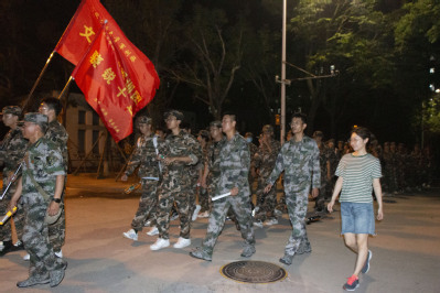 7月3日晚,我校军训旅组织了2021级学生夜间行军拉练活动。