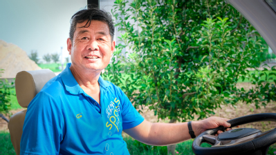 8月13日,薪火相传实践队来到山东省农科院参观调研。郭伯伯居住在东营市农高区丁庄街道郭王村,为了让实践队更好的在农科院田地里参观调研,郭伯伯专门跑步到很远的地方开来了观光车。一路上,郭伯伯热情地向实践队员介绍着田地里的一切,耐心地回答着实践队员的问题。豆大的汗珠布满了他的额头,汗水浸湿了他的衣裳,但郭伯伯脸上却一直挂着灿烂的笑容。“郭伯伯,今天真是辛苦您了!”实践队员向郭伯伯的付出表达着由衷的感谢,郭伯伯连忙摆手,对实践队员说:“不辛苦不辛苦,和你们相处我很开心!”