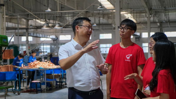 负责人为实践队介绍工厂现状 特写 于浩然摄影