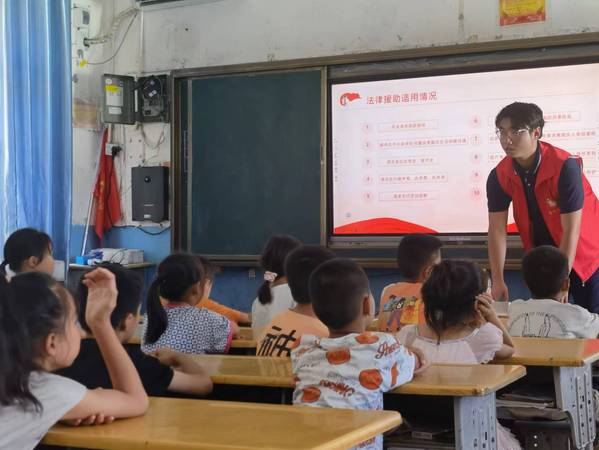 “根据之前我们的调研情况,我在宣讲时,从小处入手,科学备课,以现实案例为开头,为孩子们传播法律知识,比如说该怎么样利用法律援助的途径保护我们自身的合法权益,是否可以在名胜古迹上乱涂乱画等一些简单的法律问题,我觉得这些问题比较基础,同时也让学生们更好的吸收。”队员刘乔威说道。丰富的案例加之队员们幽默风趣的言语,教室里的小朋友们对这些丰富有趣又不枯燥的法律小课堂充满了兴趣。听完宣讲的郗同学说道:“我以前一直以为法律离我很遥远,和我是两个世界的东西,但这几天听了这些讲法律的课之后,我觉得法律就在我们身边,我以后要用法律武器来保护自己!”
