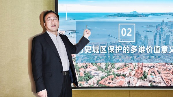 邓庆尧教授向听众介绍了青岛历史文化名城保护体系,青岛市划定地域保护范围,列出保护内容框架,城市规划一脉相承,沿着“新旧脱开布局、保护老城、发展新区”的总体保护发展思路,使得历史城区“山、海、岛、城”融为一体的整体格局得以完整保存。大处着眼,整体保护,青岛的建筑规划讲究艺术美,涉及有巴洛克风格的总督府轴线、优美的城市天际轮廓线、浪漫主义动态轴线-步移景异的中山路、标志性建筑物视觉的通廊……从美学的价值上塑造城市的美学价值,同时注重城市细节特点保护。
