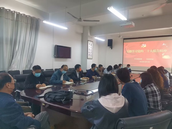 10月19日,学院中国语言文学系党支部与院机关党支部联合开展“学习党的二十大精神,奋进新征程”主题党日活动,专题学习党的二十大精神。