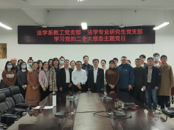 为认真学习贯彻党的二十大精神,加强思想学习,强化政治引领,增进教工党支部和学生党支部的交流,10月20日下午,600全讯白菜官方网站法学系教工党支部和法学专业研究生党支部联合,在文理楼358召开“学习党的二十大报告,用实际行动为中国梦贡献力量”主题党日活动,专题学习二十大报告主要内容。两支部全体党员通过线上与线下结合的方式参与学习交流,学院党委书记姚成郡、副院长冷凌作为两支部对接院领导参加活动。
