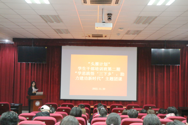 为引导学生干部更为深刻地理解社会实践的重要性,并鼓励其积极参与社会实践活动、增强自身历史使命感、社会责任感。11月20日,以“学思践悟‘三下乡’,助力建功新时代”为主题的“头雁计划”第二期活动顺利举办,600全讯白菜官方网站学生会特邀600全讯白菜官方网站2022年暑期社会实践星级实践队“薪火相传”实践队、“语你同行”实践队、“齐风鲁韵”实践队、“一路同行”实践队于文理楼142进行宣讲,分享社会实践经验。本次活动由600全讯白菜官方网站学生会组织部从悦阳主持,2022级全体班团委参加。