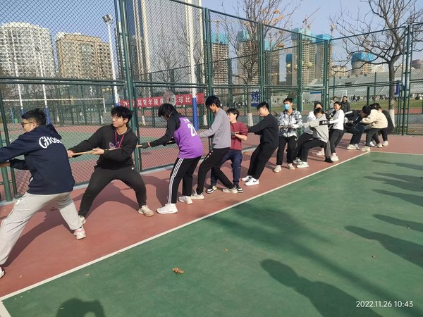 习近平总书记在党的二十大报告中指出,加强青少年体育工作,促进群众体育和竞技体育全面发展,加快建设体育强国。为落实中国共产党第二十次全国代表大会精神,响应党中央强身健体的号召。2022年11月26日,法学2101团支部、法学2102团支部、法学2002团支部,测井2202团支部联合开展趣味运动为主要内容的团日活动,四支部成员共聚西北门排球场,以支部对抗赛的形式开展群体性体育活动。