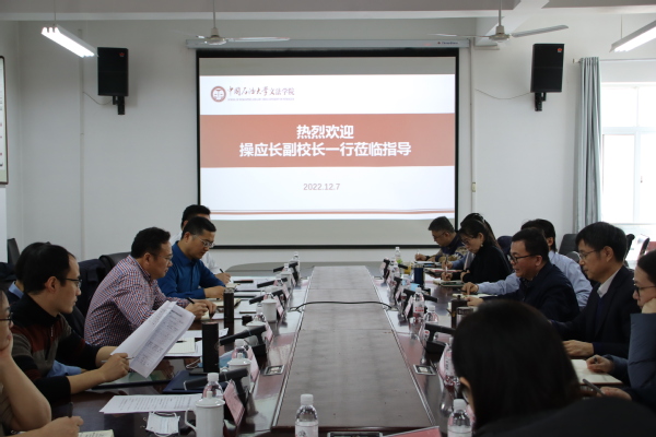 12月7日,副校长操应长一行6人来学院调研指导工作。人事处处长牛庆玮、发展规划处处长李贞刚、国有资产管理处处长王浩浩、人才工作办公室主任裴仰文、人事处副处长许荣霞及学院领导班子、各系主任参加座谈交流。