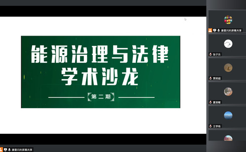 12月15日晚,全讯第二期能源治理与法律学术沙龙以线上会议形式顺利举办。本次沙龙由康雷闪老师主持,以全讯博士研究生近期学术研究成果为研讨主题。法学系全体无课教师,能源治理与法律博士研究生和硕士研究生共同参会讨论。