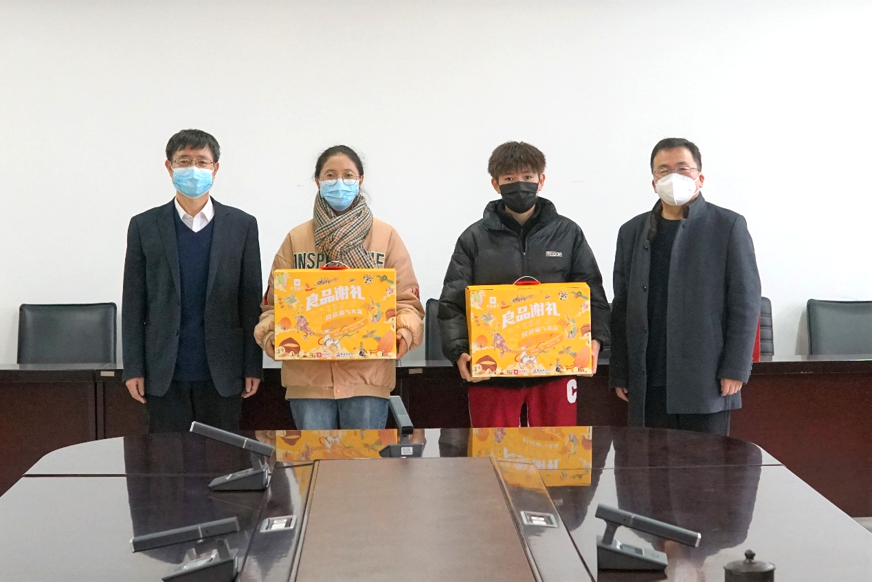 院领导为留校学生发放学校、学院慰问品 杨倩摄