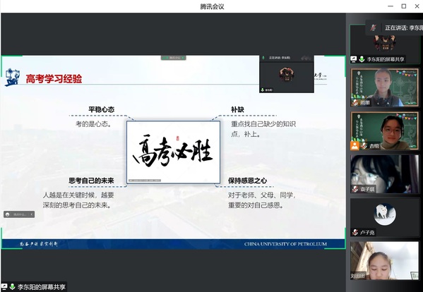 为落实中国石油大学(华东)学子回校计划,积极投身于学校的招生宣传工作,同时结合本地疫情防控需要与学生居家网课的现状,通过与邢台市第一中学的交涉,由翟瑞雪、李东阳、周墨、李壬森、张栋组成的赴邢台市第一中学招生宣讲实践队“创阳宣传队”于2023年1月8日19:00,同邢台市第一中学学子开展线上招生宣讲活动。