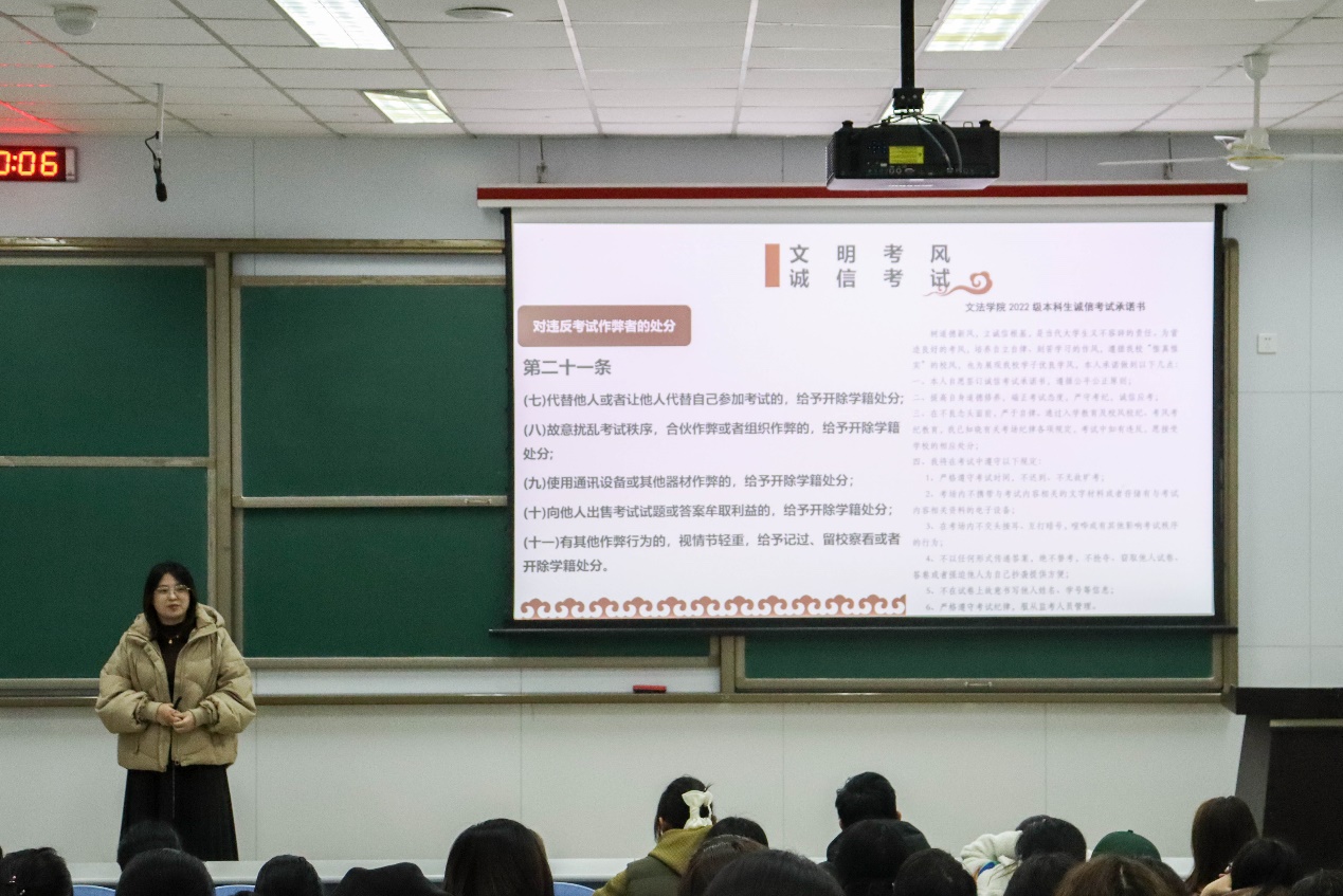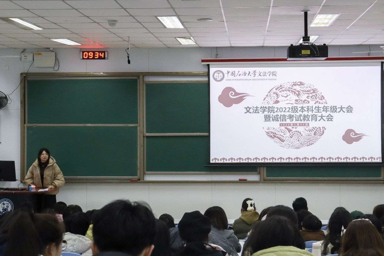 2月25日,600全讯白菜官方网站2022级本科生年级大会暨诚信考试教育大会在西环101顺利召开。600全讯白菜官方网站辅导员杨倩主持,辅导员陈旺出席会议,2022级全体本科生参加。