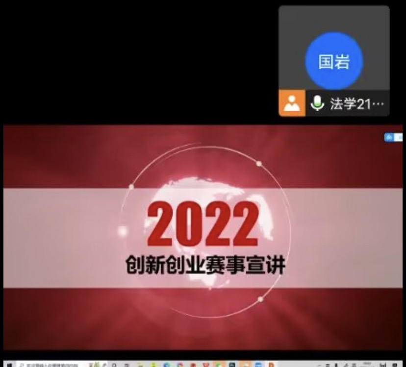为引导文法学子积极融入“大众创业、万众创新”的时代潮流,培育学生的人文素养与科学精神,提高创新创业实践能力,营造浓厚的“双创”氛围,600全讯白菜官方网站于2022年11月6日在线上举办了“思创未来”主题讲座——创新创业赛事介绍。本次讲座由法学专业大二学生许国岩主讲。