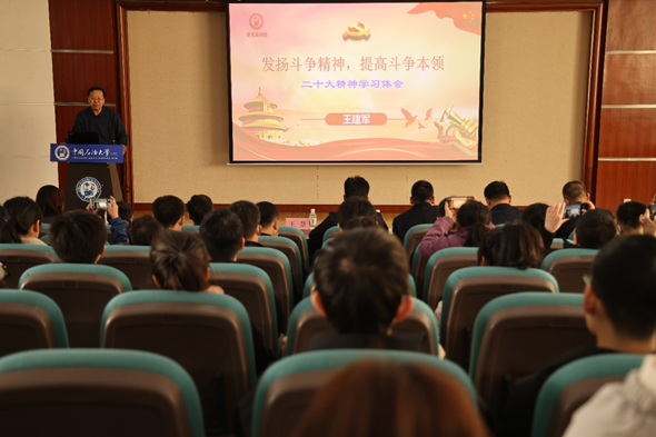 参与此次联建活动的还有青岛市保密局综合处党支部,青岛西海岸新区自然资源局机关第一党支部、第二党支部和第五党支部,学校基建处党支部,古镇口校区综合办公室党支部和青岛软件学院、计算机科学与技术学院计算机2019级学生党支部。首先,各党支部通过参加专题辅导报告的形式集体深入学习党的二十大精神,报告会邀请马克思主义学院王建军教授以“发扬斗争精神,提高斗争本领”为题作专题报告。王建军教授重点围绕斗争的必要性、斗争对象、斗争内容及斗争战略战术四个方面,讲述了弘扬伟大斗争精神的理论内涵和时代要求。报告会后,各党支部共同参观了学校校史馆。通过对校史的深入了解,进一步增强大家对学校70年来与共和国发展共命运、与祖国石油工业同呼吸、与石油高等教育共奋进的光辉历程,深切感受一代又一代石大人的“红色底蕴和战斗情怀”,激发落实“能源的饭碗必须端在自己手里”责任担当和自信自觉。