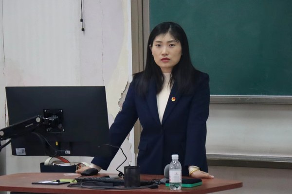 团课伊始,于露开展题目为《基础团务培训》的第三讲。首先,于露介绍了共青团的组织、职能和历史,让学生了解共青团的性质、团旗、团歌、团徽以及团的节日,明确共青团的职能在于组织青年、引导青年、服务青年以及维护青年权益,同时从历史的角度讲述共青团的发展历程。接着,于露讲解共青团干部的含义、作用、意义以及应当具备的素质和能力,倡导广大共青团干部要团结先进的青年和群众,发挥好示范典型和先锋模范的作用。最后,她从“三会两制一课”、主题团日活动、10+团支部工作等角度,讲述基层团支部书记的工作职责,激励团支部书记担当职责,为支部的长远发展做好规划,同时勉励在座学员刻苦学习、勤于实践、敏于创新、全面发展。