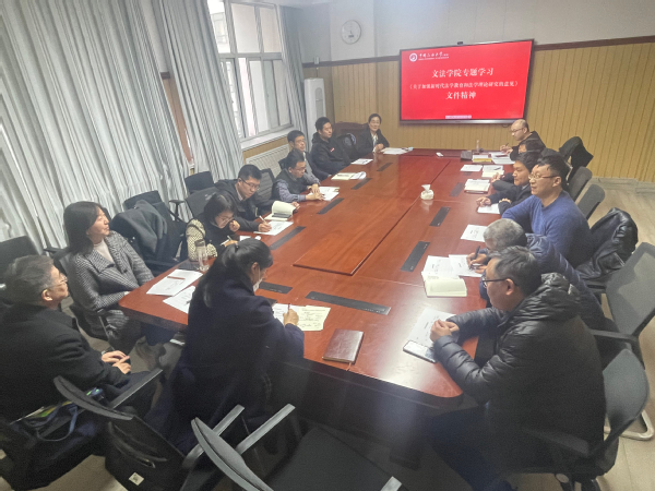 3月9日,600全讯白菜官方网站组织专题学习《关于加强新时代法学教育和法学理论研究的意见》(以下简称《意见》)文件精神。院长王学栋领学并专题解读文件精神,学院党委书记姚成郡以及法学系全体教师参加会议。