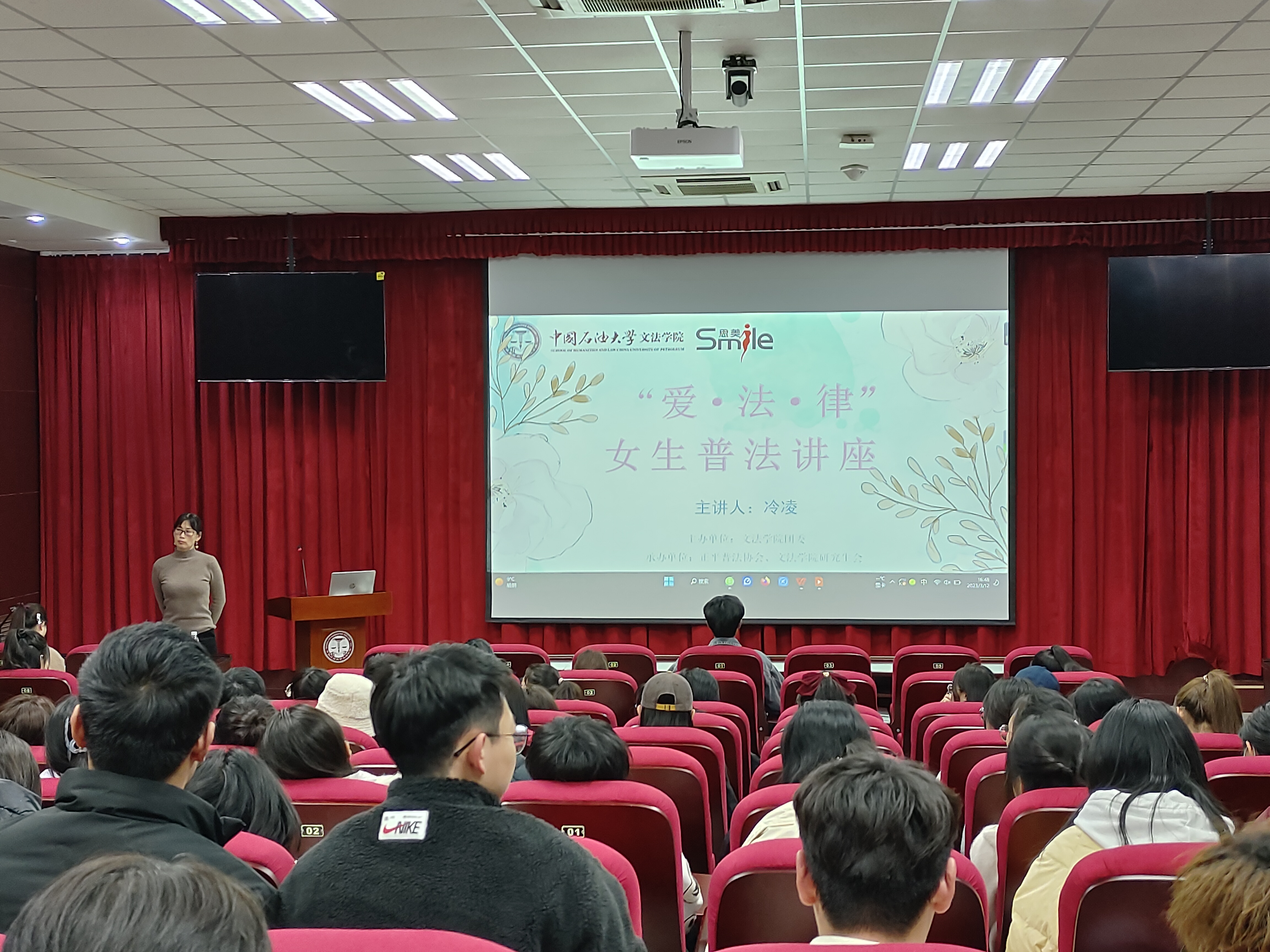 2023年3月12日下午,由600全讯白菜官方网站主办正平普法协会承办的“爱·法·律”思美节女生普法讲座于文理楼142举办。本次讲座邀请600全讯白菜官方网站副院长、法学系副教授冷凌主讲,来自全校百余名学生参加。
