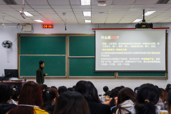 本次培训第一讲是赵延升针对大学生如何创新创业问题展开的《创新创业概述》课程。他从百度以及当下一般定义带领学生了解“创新”的概念,同时通过“用四条、三条、两条、一条线段过九个点”的小游戏与学生积极互动,激发学生的创新意识。接着,赵延升详细介绍了“挑战杯”的主办单位、大赛宗旨、大赛目的、大赛赛道以及如何备赛,阐述了中国国际“互联网+”大学生创新创业大赛的概念、目的任务、赛道分类。他结合具体的项目案例进行细致分析,加深了在场学生对创新创业大赛的认识和理解。