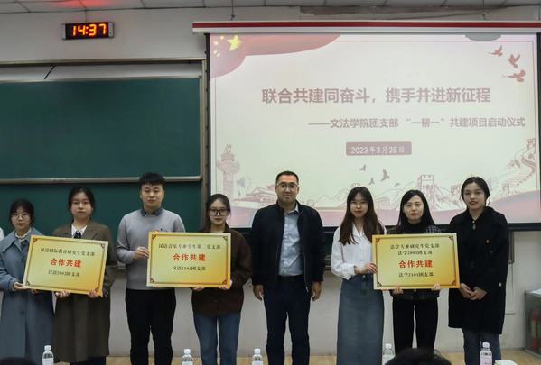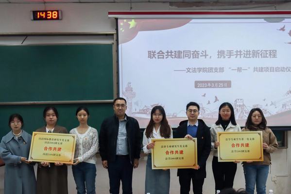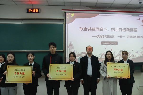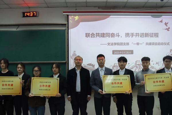 会议伊始,陈熙肯定了“一帮一”共建项目的积极引领作用,勉励各支部坚定理想信念、激发团员青年活力、提高支部建设水平。接着,团委委员李甜雨宣读共建团支部名单,季林海与陈熙为共建团支部授牌并合影留念。会上,汉语2002团支部书记郑欣雨分享了建设优秀团支部的心得体会,“我们建立了团小组督促机制,组织了丰富多样的学习会,并积极与其他高校交流分享,用丰富的理论知识武装自己”。此外,郑欣雨具体介绍了支部活动的开展情况,提出录制团课、话剧演出等一系列创意团日活动形式,为其他团支部建设提供了良好的借鉴经验。