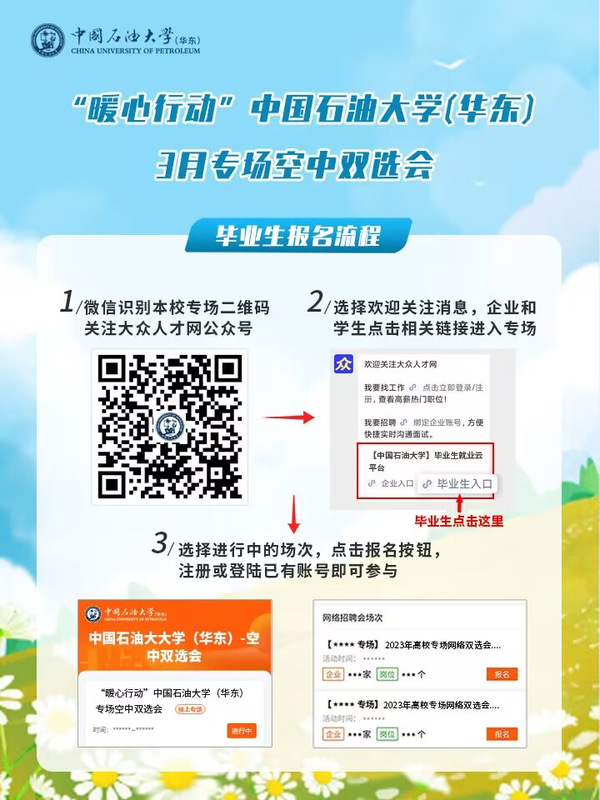 温馨提示:请同学们关注微信企业号——中国石油大学(华东)“学生就业工作”栏目,获取更多就业信息。