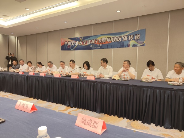 4月16日上午,建校70周年校庆旗传递活动在浙江宁波顺利举行。姚成郡、魏学宝参加了校友座谈会和校庆旗传递活动,座谈会由石大宁波校友会秘书长、汉语言文学专业2011届毕业生杨泞菱主持。