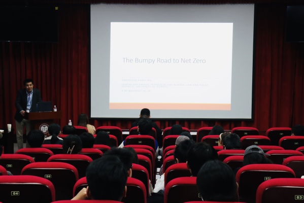 讲座伊始,牟效毅介绍了英国净零目标及进展,并将其与中国的双碳目标进行对比阐述。接着,他围绕可再生能源和气候政策,结合图表和文字展开细致生动的讲解。牟效毅从英国在实现净零排放目标方面取得的成就、支持可再生能源政策方面的组合、风电装机容量的增长和负荷的减少等角度进行总结,他表示,当前的能源危机重新引发了社会对能源的担忧,使实现净零目标更具挑战性,需要全世界的共同努力。牟效毅专业的阐述引发现场教师和学生们的思考交流,在互动环节,针对学生关于“2022年初煤炭价格上涨是否是实现净零排放目标的正向现象”的提问,牟效毅回答道:“煤炭价格上涨原因可以考虑天然气价格上涨直接影响煤的需求,以及受到国际关系的影响,同时,国家主张使用可再生能源对煤炭造成一定冲击。”