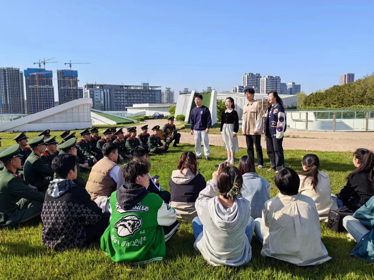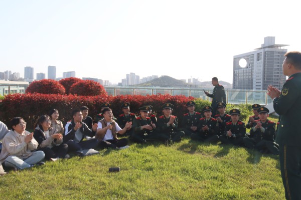 与室内座谈会同时进行的是长山舰青年官兵与学院师生的校园参观活动。在辅导员赵延升、李甜雨的带领下,青年官兵们游览参观了图书馆新馆、小黄山等石大标志性建筑,并在图书馆新馆顶楼与学生们开展交流活动。他们席地而坐,学生们齐唱《映山红》和《中国石油学院学生之歌》,展现石大学子积极昂扬的风貌;官兵们带来气势磅礴的《强军战歌》等军旅歌曲,展现军人的豪迈风范。