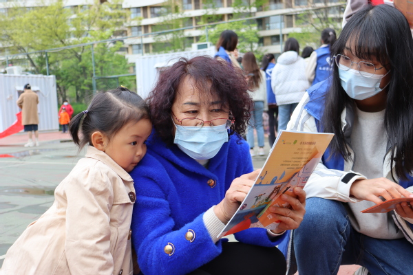 随后,各支部成员围绕书籍分享展开宣传。他们针对青年人、中年人、老年人等不同的年龄段制定了不同书目的推荐书单,将宣传单分发给各年龄层次的居民。除此之外,薄纯璐、邓一帆等支部成员带领孩子们共同阅读并赠送儿童绘本,激发孩子们的阅读兴趣。分发宣传单的同时,各支部成员联合社区居民进行书籍知识趣味问答,他们以书签作为答题奖励,使得居民踊跃答题,大大调动了社区居民参与本次活动的积极性。