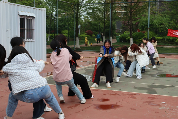 在薛家岛社区篮球场,社区负责人组织汉语2201团支部的成员通过开展趣味运动会吸引社区居民前来围观。托球跑接力、两人三足接力、跳大绳、保护气球、拔河……丰富多彩的环节使篮球场充满欢声笑语,展现了石大学子的青春风采与青春活力。
