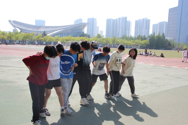 活动伊始,由朱承介绍活动背景和讲解五四精神。通过讲解,团员们对五四精神和本次活动的理解更为深刻。接着,法学2202团支部体育委员杨亦然介绍活动项目以及比赛规则。本次趣味运动会共有五个项目:坚定不移 (东西南北跑)、寸步难行(双线搭桥走乒乓球)、胸有成竹 (翻牌子,记数字)、同舟共济(两人三足plus版)和灵活机敏 (躲沙包)。规则介绍完成后,项目开始依次进行。随着裁判一声令下,选手们纷纷动身:在“坚定不移”中,展现对抗力;在“寸步难行”中,展现专注力;在“胸有成竹”中,展现记忆力;在“同舟共济”中,展现团结力;在“灵活机敏”中,展现敏捷力。选手们挥洒汗水,观众鼓掌欢呼,现场充满竞争和激情,同时也充满友谊和合作。最后,法学2202、物探2202两团支部交流感想,并合影留念。