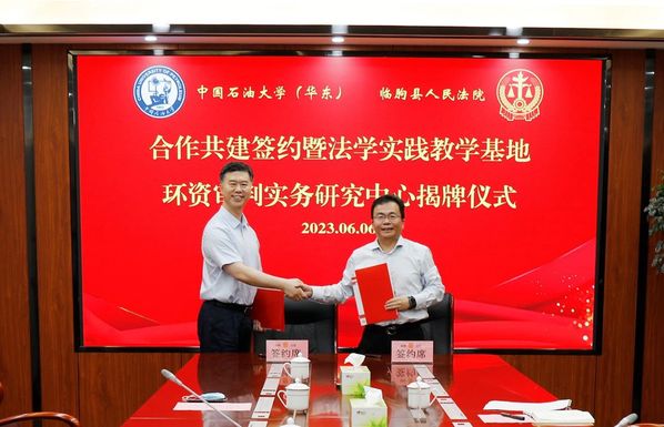 6月6日,600全讯白菜官方网站与临朐法院合作共建签约暨法学实践教学基地、环资审判实务研究中心揭牌仪式在临朐法院举行。院长王学栋,党委副书记陈熙,法学系教师李猛以及临朐县委常委、政法委书记李守成,临朐法院党组书记、院长马瑛杰,党组成员、政治部主任倪国庆,党组成员、副院长沈汝业,部分干警参加仪式。