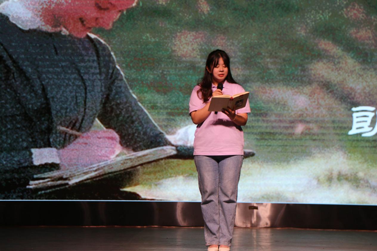 本次朗读大会由赵思怡演唱的一曲《有我》拉开序幕,调动了现场的热烈氛围。在“少年强”篇章,汉语2201和汉语2202班的诗词朗诵《少年》、汉语1902红旗团支部团支书许博凡的朗读《我与地坛》、汉语2101和汉语2102班的集体朗诵《青春中国》以嘹亮激昂的声音,宣告了少年勇肩重担、奋力拼搏的青春誓言。“人生中总会遇到许多不如意的事情,我们要始终以乐观的心态面对这些不如意,而我们的青春因这些品质而闪亮,所以我选择分享《我与地坛》选段。”许博凡在采访中如是说。