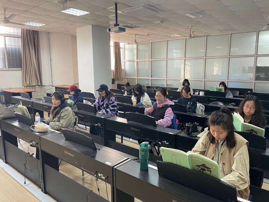 一日之计在于晨,清晨练琴与练嗓子早已成为音乐专业学生的每日习惯。在琴房里,琴键起伏,琴弦拨动,学生们敲出悦耳的音符、拉出柔美的旋律,通过每天准时刻苦的练习,逐渐掌握和熟悉音乐节奏和旋律,不断提高演奏水平。最简单的音符,往往需要音乐生们放声练习许多遍才唱准,一首首动听的歌曲是音乐生练习无数次后的成果。为了监督音乐生在自习时间积极练琴练声,辅导员陈旺也会定期到琴房陪同大家一起练习。