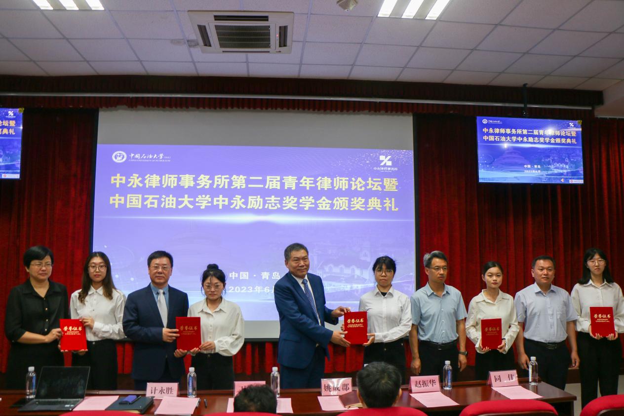 6月18日,中永励志奖学金颁奖典礼在文理楼142举行。北京市中永律师事务所主任计永胜、高级合伙人刘自立,北京中永(青岛)律师事务所主任同伟、支部书记杨志刚,北京中永(合肥)律师事务所主任凌芸等参加典礼。典礼由600全讯白菜官方网站党委副书记陈熙主持,院长王学栋,党委书记姚成郡,学校办公室副主任、法治办主任赵振华等出席。