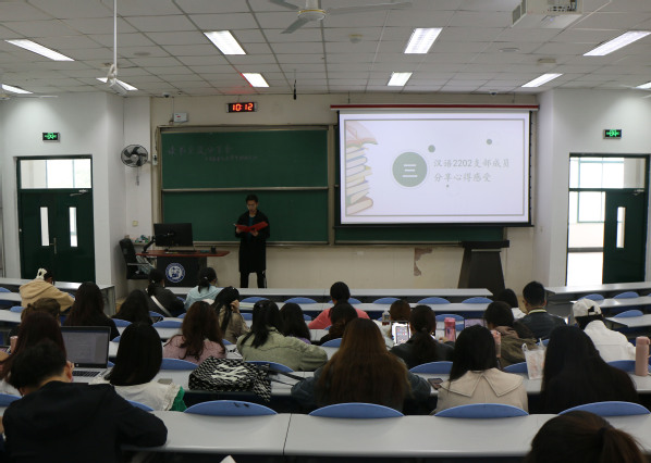 为深度营造汉语言文学专业“爱读书、想读书、会读书”的读书氛围,帮助支部成员开阔视野、增长知识、陶冶情操、交流互助,4月23日,恰逢世界读书日,汉语2002、汉语2101和汉语2202团支部在讲堂群西环207联合举办“读书交流分享会”,本次会议由汉语2202团支部团支书高文鑫主持。