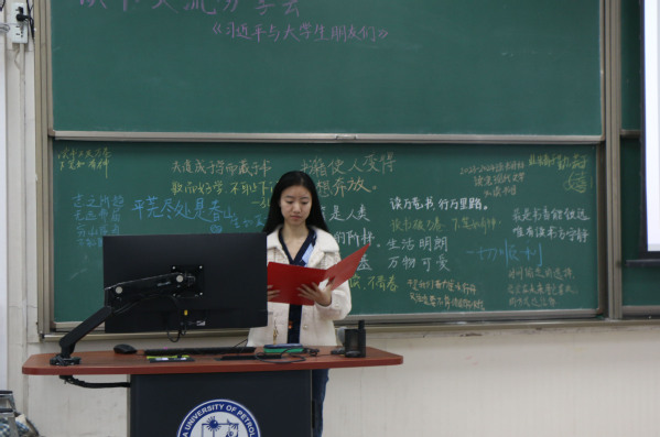 汉语2002团支部书记郑欣雨认为《习近平与大学生朋友们》深刻记录了习近平总书记的历史担当、人民情怀和高瞻远瞩以及对青年大学生始终如一的关注、关心、关爱,是一本常读常新的好书。在活动的最后,她总结说,“此次我们以世界读书日为契机,联合三个年级的汉语支部开展读书交流会,是又一次有效深入的学习。通过聆听其他同学的阅读感悟,也丰富了我对此书的理解。期待我们下次读书交流分享会的进行!”