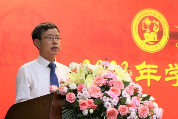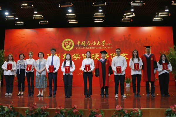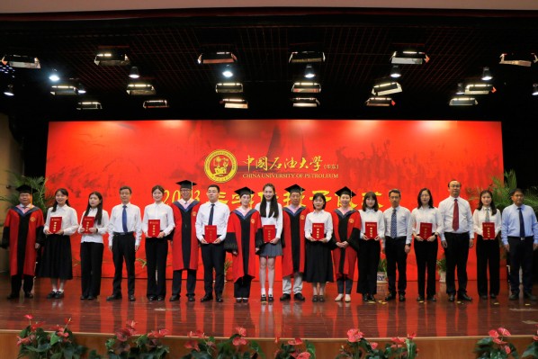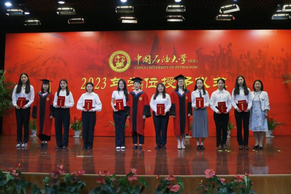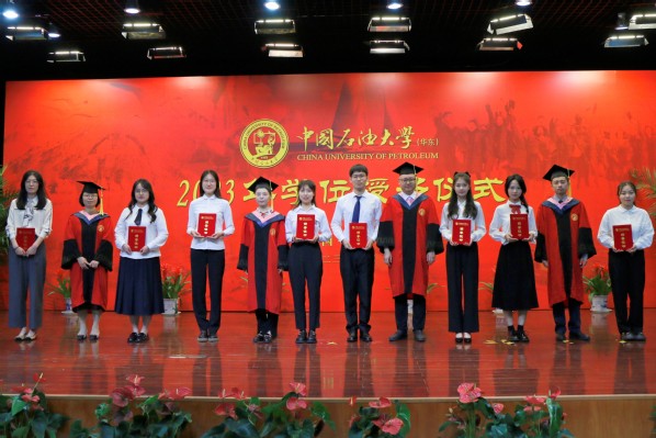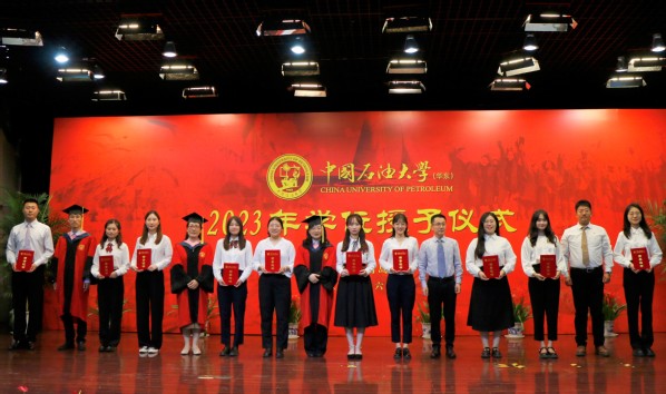 党委书记姚成郡宣读《关于表彰2023届优秀毕业生的决定》,张子壬等18名学生获评“山东省优秀毕业生”荣誉称号,王晓等20名学生获评“中国石油大学(华东)优秀毕业生”荣誉称号,王川文等25名学生获评“600全讯白菜官方网站优秀毕业生”荣誉称号。
