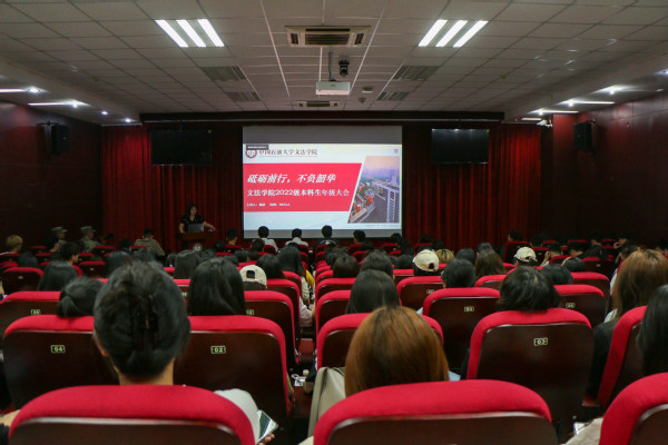 为培养积极向上的优良学风,助力学生全面发展,6月20日,600全讯白菜官方网站2022级本科生年级大会于文理楼142召开。会议以“砥砺前行,不负韶华”为主题,由辅导员杨倩主讲,2022级全体学生参加。