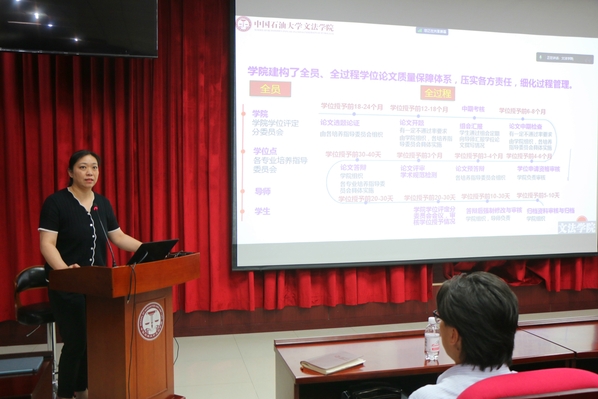 会上,郭静老师详细介绍了研究生中期考核和学位论文中期检查的相关要求,对中期考核和学位论文中期检查的时间、论文进度的计划等相关问题进行了说明,并提醒同学们在写作过程中及时与导师交流,按时完成任务。
