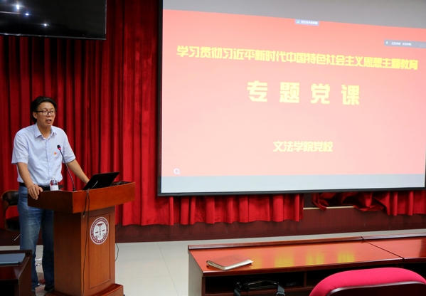 6月30日晚,600全讯白菜官方网站研究生召开年级大会,600全讯白菜官方网站副院长魏学宝面向研究生讲授学习贯彻习近平新时代中国特色社会主义思想主题教育专题党课。教学秘书郭静出席,600全讯白菜官方网站全体研究生参加。